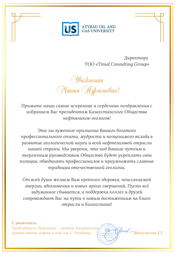 Уважаемая Мансия Нургалиевна! От имени коллектива Казахстанско-Британского технического университета и себя лично примите искренние поздравления в связи с Вашим избранием на...